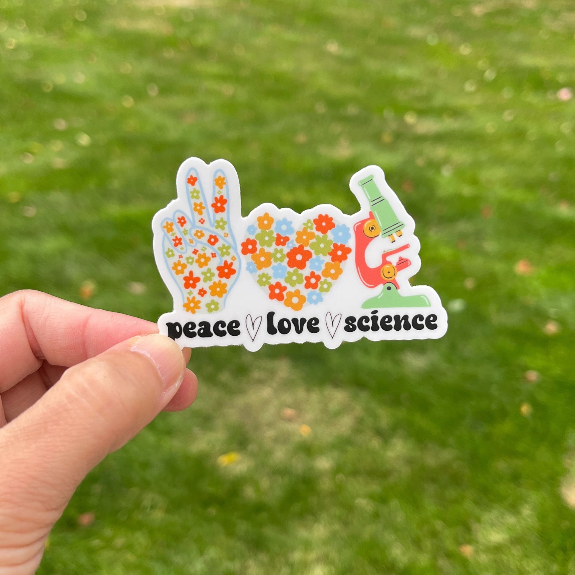 Peace, Love, Science ✌❤️🔬 Vinyl Sticker