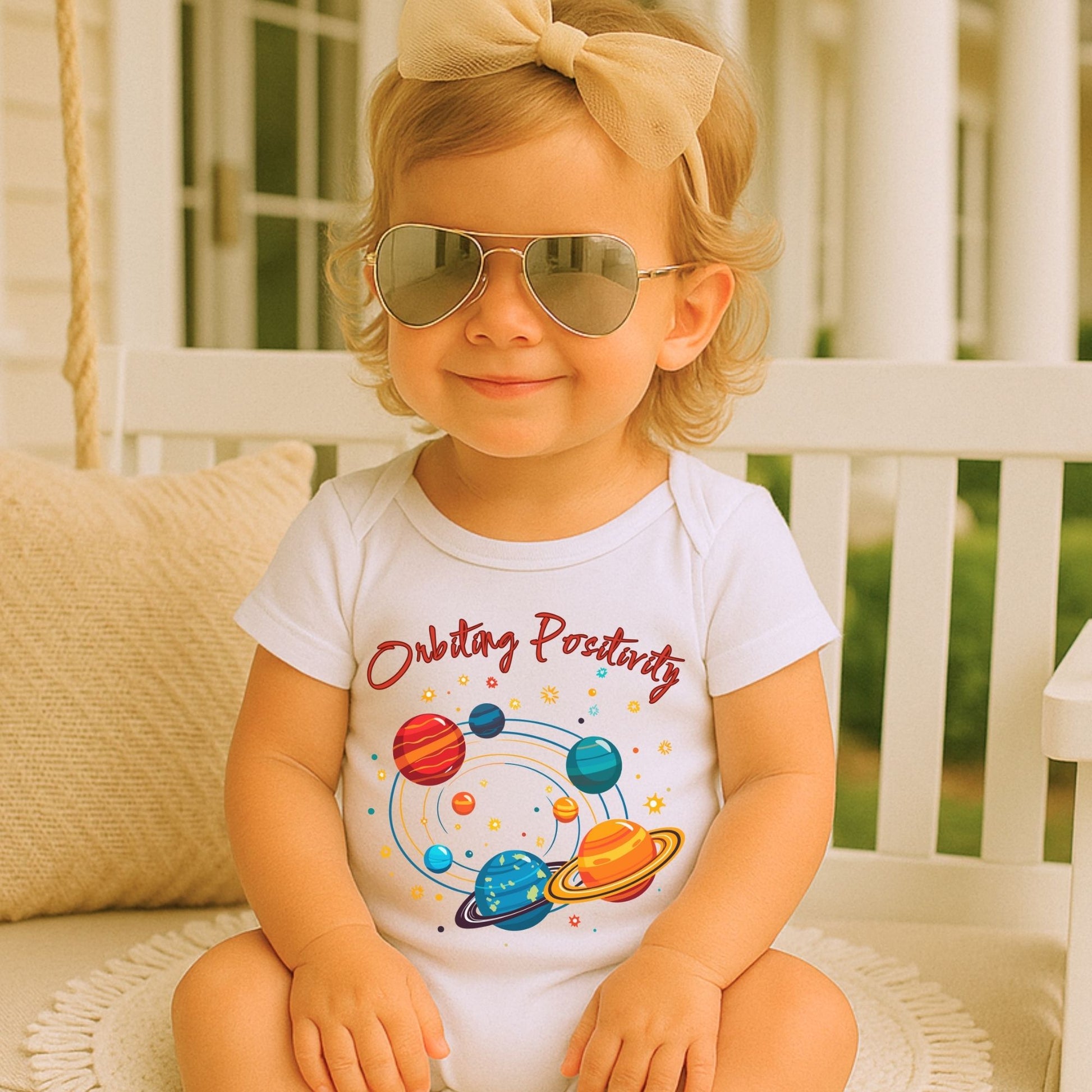 Dress your little explorer in this baby space onesie featuring colorful planets and cosmic charm! Soft and cozy, this STEM-inspired bodysuit is perfect for newborns and toddlers. A must-have for baby showers, everyday wear, museum gift shops, and planetarium keepsakes.