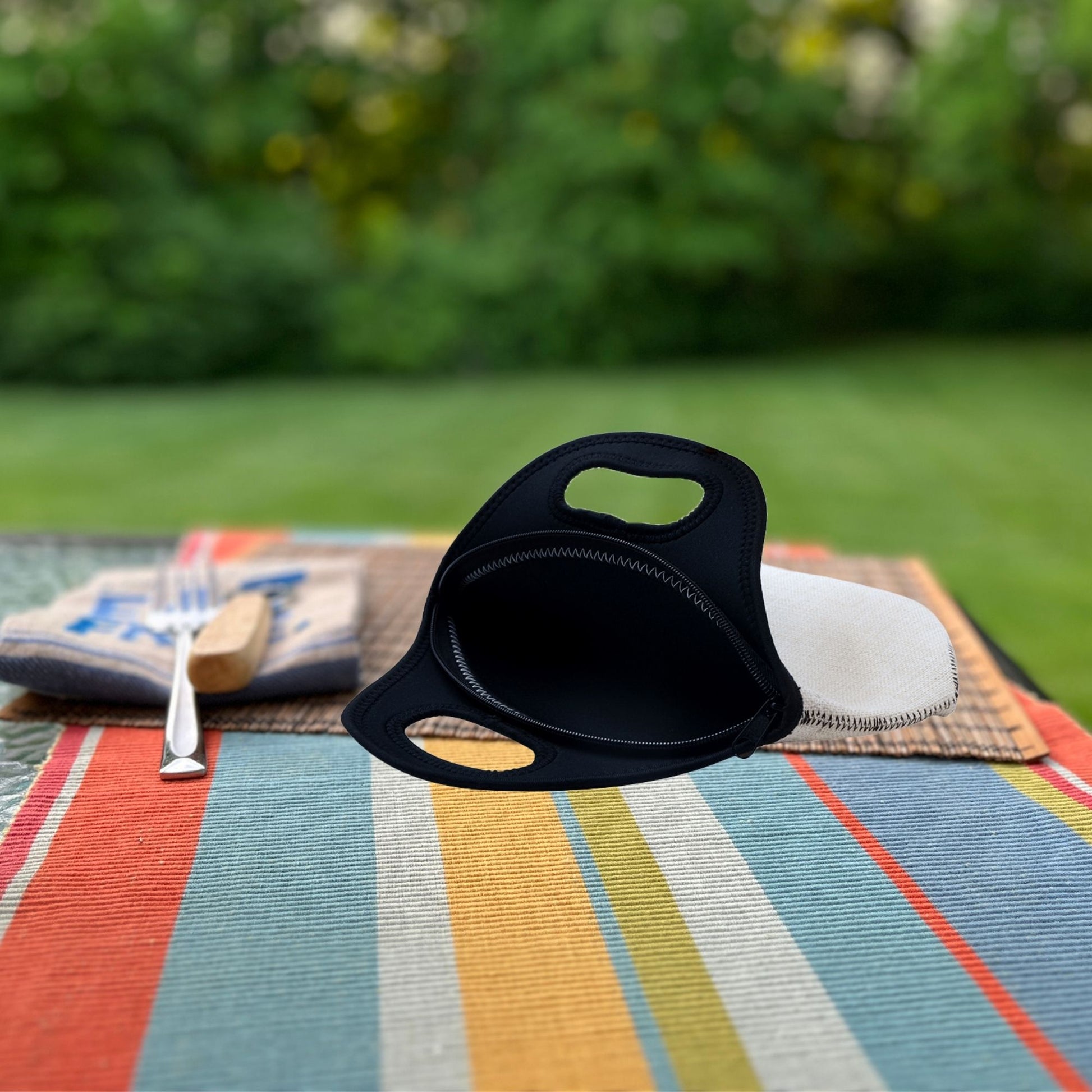 This is not an insulated cooler but It's crafted from linen material outside and neoprene fabric inside, just like a wetsuit, to ensure your meals stay tasty and cool! 🀩