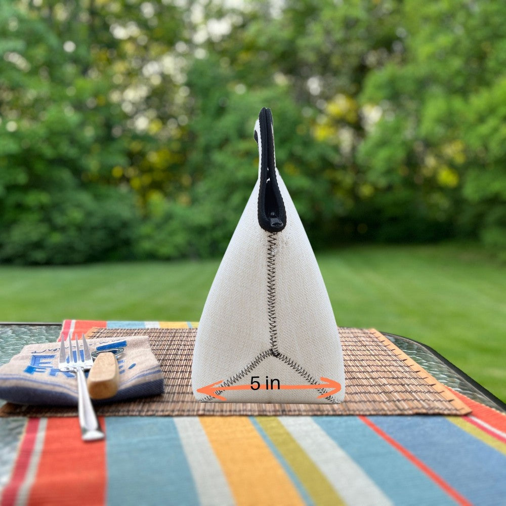 This is not an insulated cooler but It's crafted from linen material outside and neoprene fabric inside, just like a wetsuit, to ensure your meals stay tasty and cool! 🤩